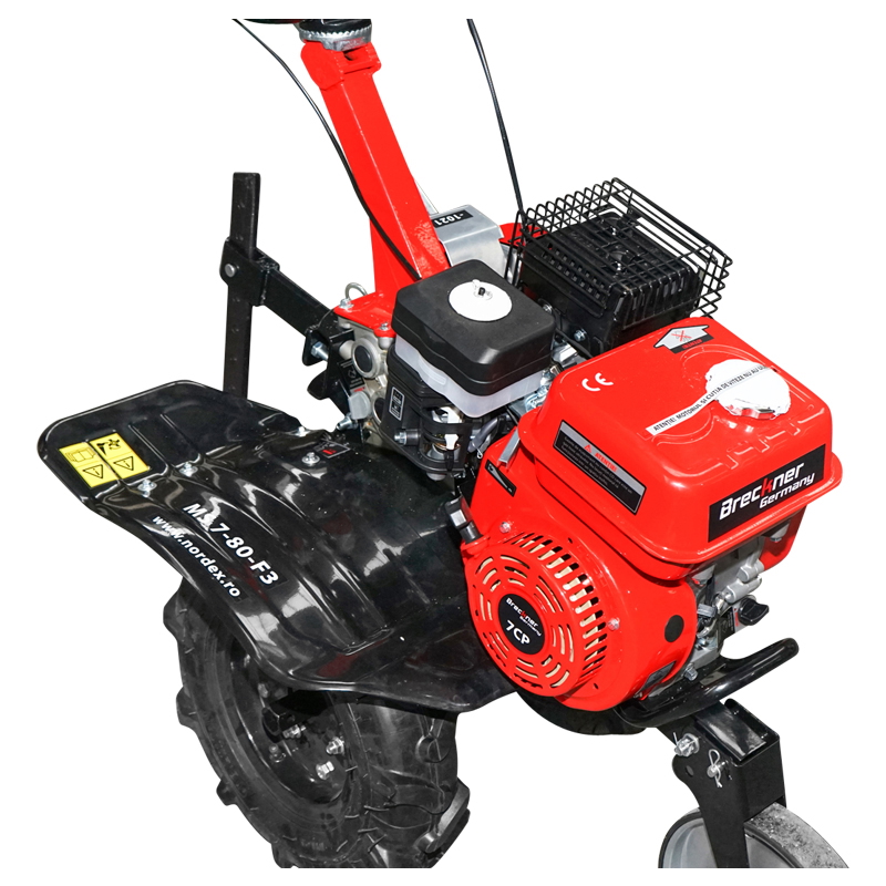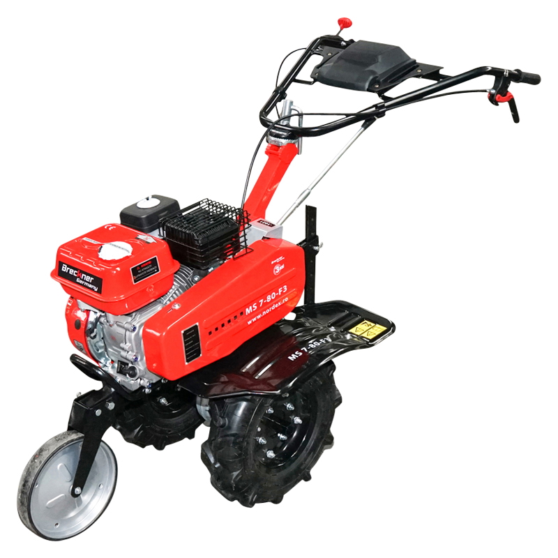 Motocultorul Brecner Germany model MS 7-80-F3 este unul din modelele cu motorizare pe benzina. Acesta are o capacitate de 208 cm³ si dezvolta 7 CP. Latimea de lucru este de 80 cm iar adancimea de sapare a frezelor poate varia de la 15 cm pana la 25 cm. Motocultorul are o greutate de 77 kg ceea ce sporeste aderenta rotilor ce sunt incluse in pachet.